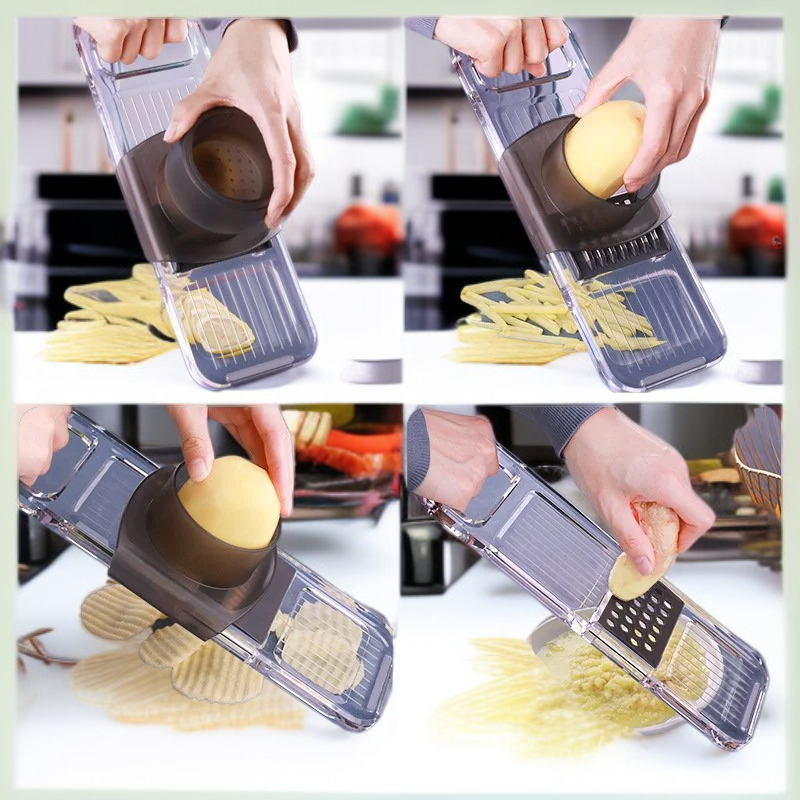 ● Wielofunkcyjna krajalnica umożliwia szybkie i wygodne krojenie warzyw, owoców oraz serów, oszczędzając Twój czas w kuchni. ● Wykonana z wysokiej jakości materiałów, zapewnia trwałość i bezpieczeństwo podczas codziennego użytkowania, nawet przy intensywnym krojeniu ziemniaków. ● Ergonomiczny uchwyt oraz kompaktowy rozmiar sprawiają, że krajalnica łatwo mieści się w każdej kuchennej szufladzie i jest wygodna w użytkowaniu. ● Prosty demontaż i możliwość mycia w zmywarce sprawiają, że utrzymanie krajalnicy w czystości jest niezwykle łatwe i szybkie.