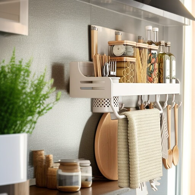 bezdziurkowy stojak kuchenny, ścienny stojak na pałeczki, noże, szpatułki i słoiki z przyprawami, wielofunkcyjny wiszący stojak kuchenny, akcesoria kuchenne